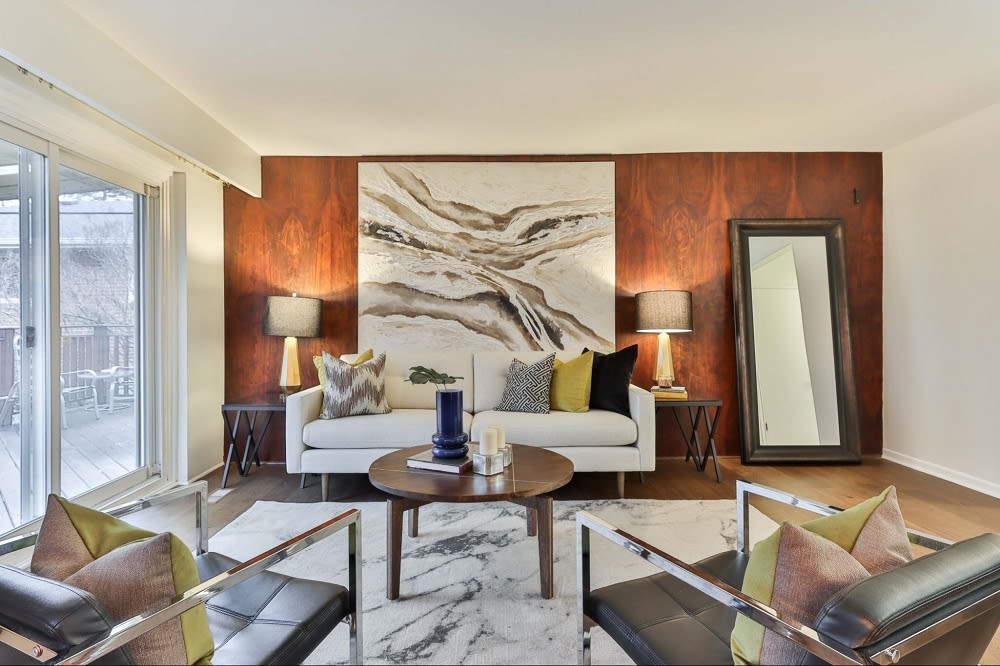 Too much furniture — or too many large pieces of furniture — in a room can make it look cluttered and cramped. During the staging process, remove as much furniture as possible and place it in your storage unit. Each room should have the minimal amount necessary to convey its purpose. For example, a bedroom should have only a bed, a nightstand, and a dresser, while a sitting room should have only one or two chairs and a side table.